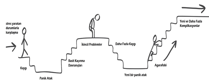 Hastaların, yalnız olarak atak geleceğini düşündükleri yerlere gidememe, o tür yerlerde kalamama durumlarına “Agorafobi” adı verilir. Panik bozukluğu ile beraber oldukça sık görülen bir durumdur. Kişiyi gittikçe yalnızlaştıran bir durumdur.