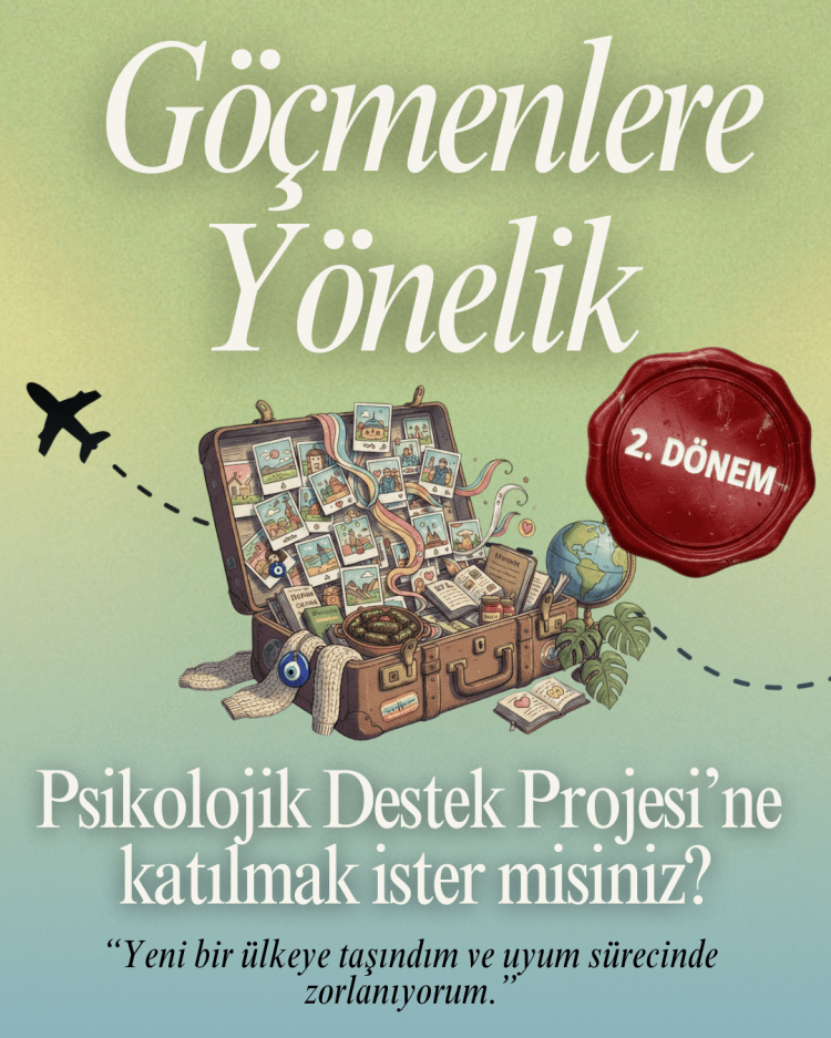 🌿 Göçmenlere Yönelik Psikolojik Destek Projesi, yurtdışında en az 6 ay boyunca yaşamış olan göçmenlerin ruh sağlığını desteklemek, uyum sürecinde yaşadıkları yalnızlık, kaygı ve stresle başa çıkmalarına yardımcı olmak amacıyla hayata geçirilmiştir.