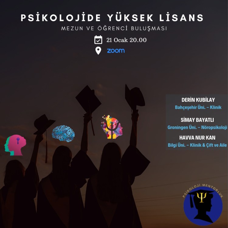Bu etkinlikle Bahçeşehir Üniversitesi Klinik Psikoloji Master’ı yapan Derin Kubilay, Groningen Üniversitesi’nde Klinik Nöropsikoloji Master’ını bitiren Simay Bayatlı ve Bilgi Üniversitesi Çift ve Aile Terapisi Master programını bitiren Havva Nur Kan kendi tecrübelerinden yola çıkarak sizlerle bir araya geldi. Bu keyifli sohbette bilgi, deneyim ve kişisel kariyer yolculuğumuzu sizlerle paylaştık; sizlerden gelen sorularla meslektaşlarımıza destek olduk. Detaylı bilgi için tıklayınız.