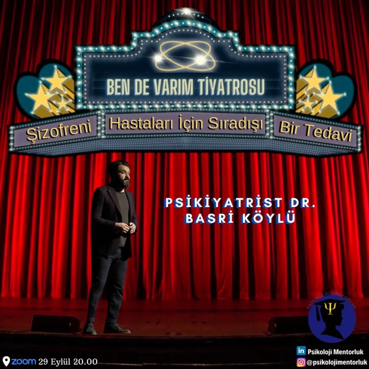 Psikoloji Mentorluk ile yeni döneme taze bir başlangıç yapıyoruz! Psikoloji dünyasının en enteresan patolojilerinden biri olarak görülen şizofreni konusunu bu seminerde ele aldık. Peki, bu seminerin şizofreni üzerine yapılmış diğer seminerlerden farkı nedir? Türkiye’de şizofreni hastaları ile tiyatro oyunları sahneleyen Psikiyatrist Dr. Basri Köylü, “Ben de Varım!” adlı tiyatro grubu ile farklı şehirlerde bu oyunları sergiliyor. Bu sayede hem hastaların semptomlarında bir iyileşmeye ön ayak oluyor, hem de şizofreni hastalarına yönelik toplumdaki önyargılarda bir kırılma sağlıyor. Detaylı bilgi için tıklayınız.