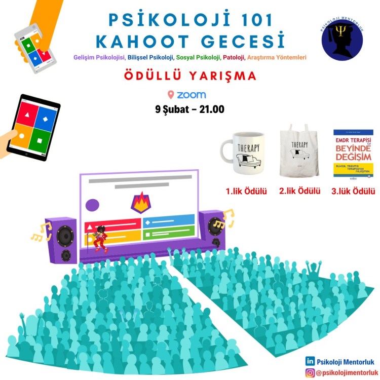 Psikoloji Mentorluk olarak yeni yıla eğlenceli bir başlangıç yapıyoruz: Oyun gecemize davetlisiniz! Bugüne dek pek çok seminer düzenledik, biraz da eğlenelim. Psikoloji bilginizi test etmek ve hediyeler kazanmak istiyorsanız, yazıyı okumaya devam edin. Detaylı bilgi için tıklayınız.