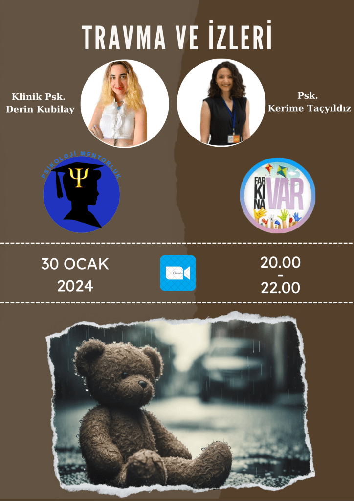 Geçtiğimiz yıl ülkemizi derinden sarsan Kahramanmaraş depremi sonrasında ruh sağlığımızda da derin sarsıntılar oluştu. Travmatik olaydan direk etkilenen bireylerin yanı sıra, halkımızın büyük çoğunluğu ikincil travma belirtileri gösterdi. Bu yüzden travma kavramını derinden ele alacağımız seminerimizde bu konu hakkında bilgi birikiminizi geliştirebilir, farkındalığınızı arttırabilirsiniz. Detaylı bilgi için tıklayınız.